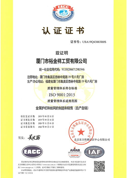 認(rèn)證證書-質(zhì)量管理(中文)